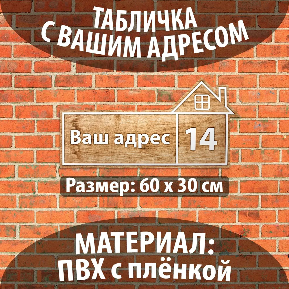 Табличка адресная 60х30 см прямоугольная с лого, RR 32 темно-коричневый