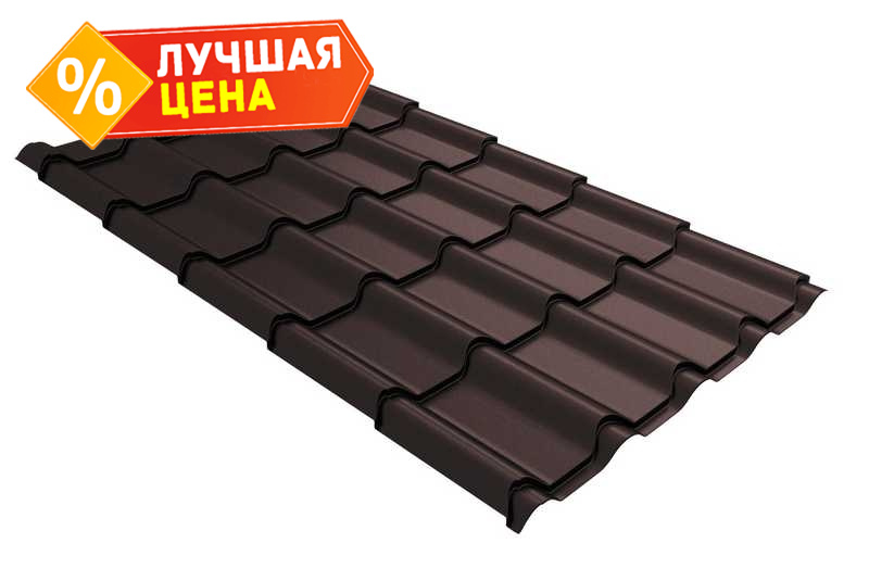 Металлочерепица Grand Line Kvinta Uno (Квинта Уно) 0,5 PurPro Matt RR 32 Темно-коричневый | c 3D резом