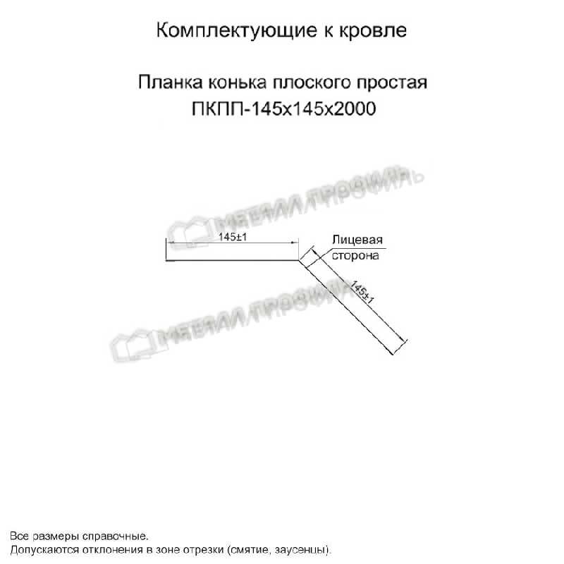 Планка конька плоского простая 145х145х2000 (ПЭ-01-7024-0.45)