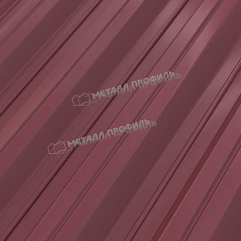 Профиль имеет форму НС-35, что позволяет ему легко соединяться друг с другом и образовывать надежную защиту от внешних воздействий. Он окрашен в красный цвет RAL 3005, который придает зданию элегантный и стильный вид, напоминающий красное вино.