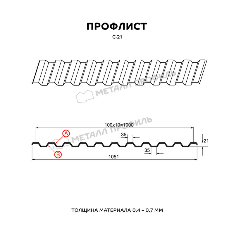 Профлист Металл-Профиль С-21 CLOUDY® 0.5 мм Anticato Терракотовый - это качественный и надежный материал для строительства и отделки.
