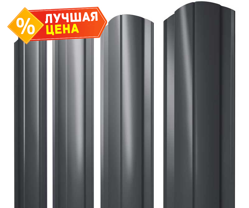 Штакетник Круглый фигурный Grand Line 0,5 Quarzit PRO Matt RAL7024 Мокрый Асфальт